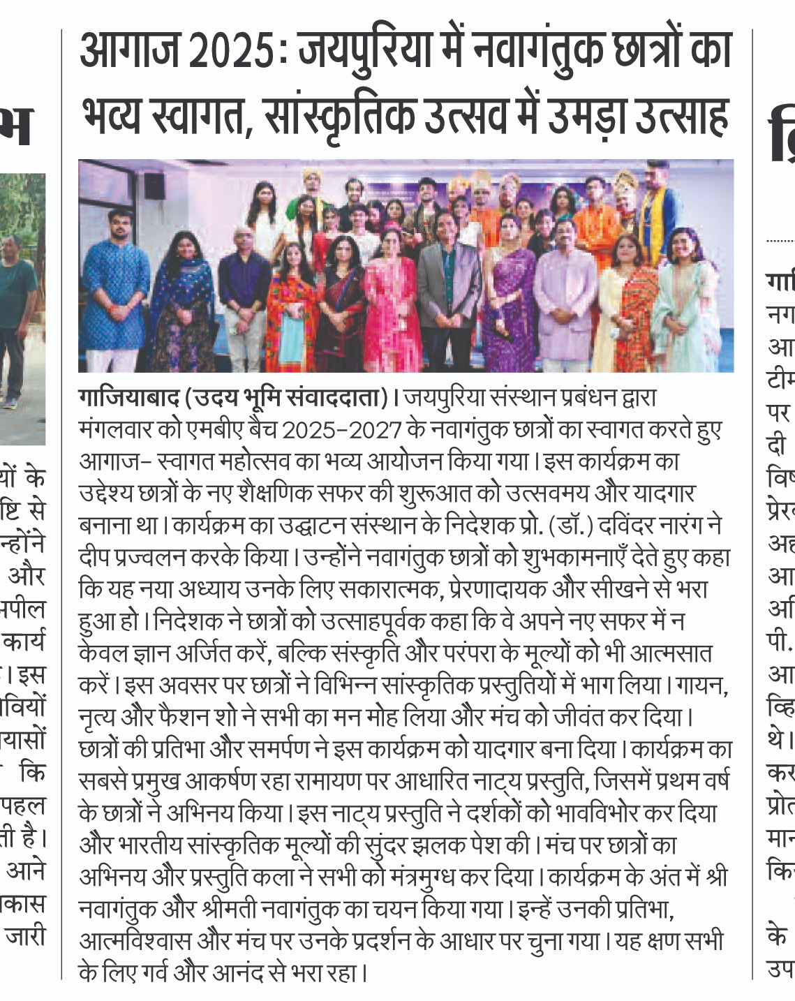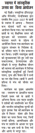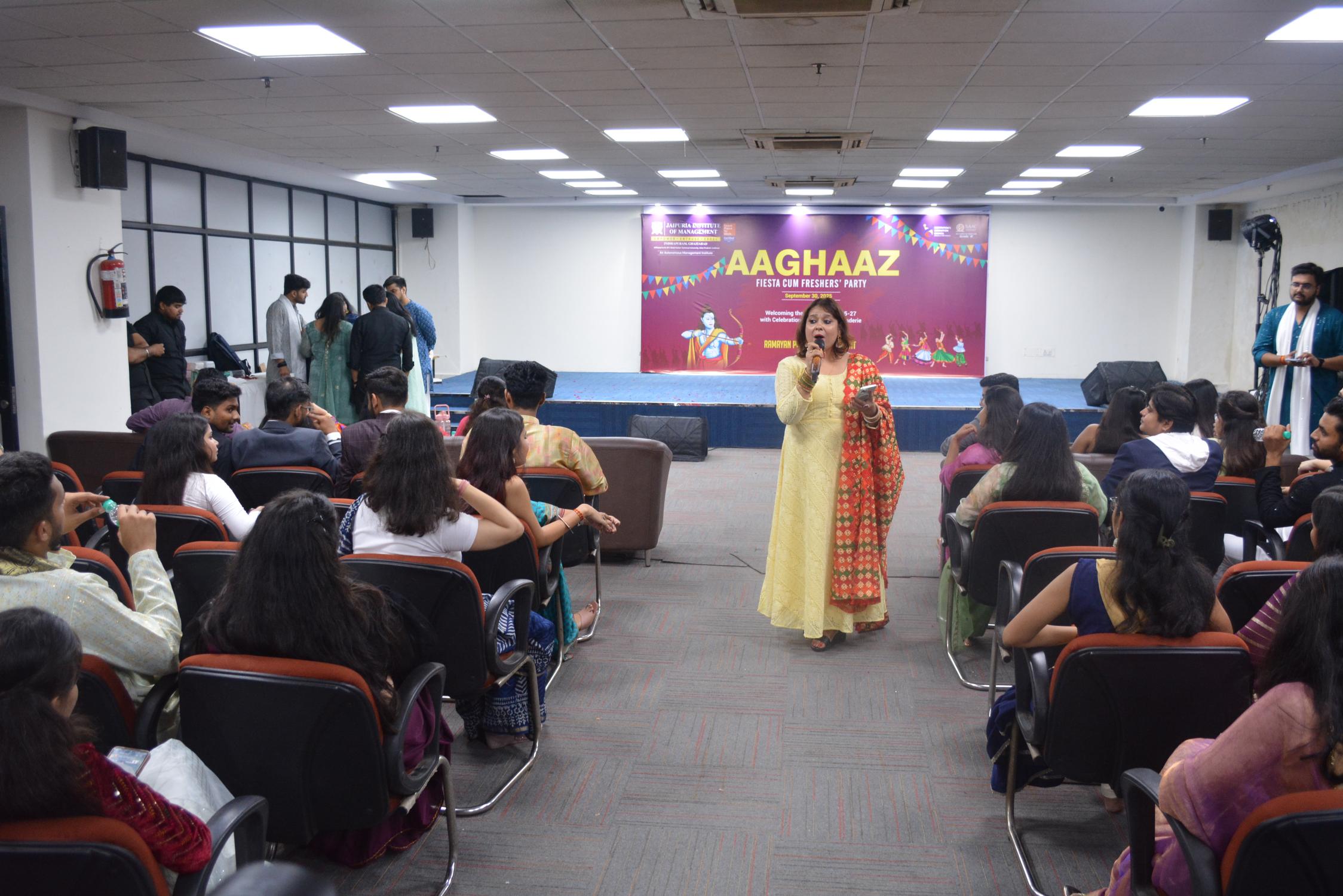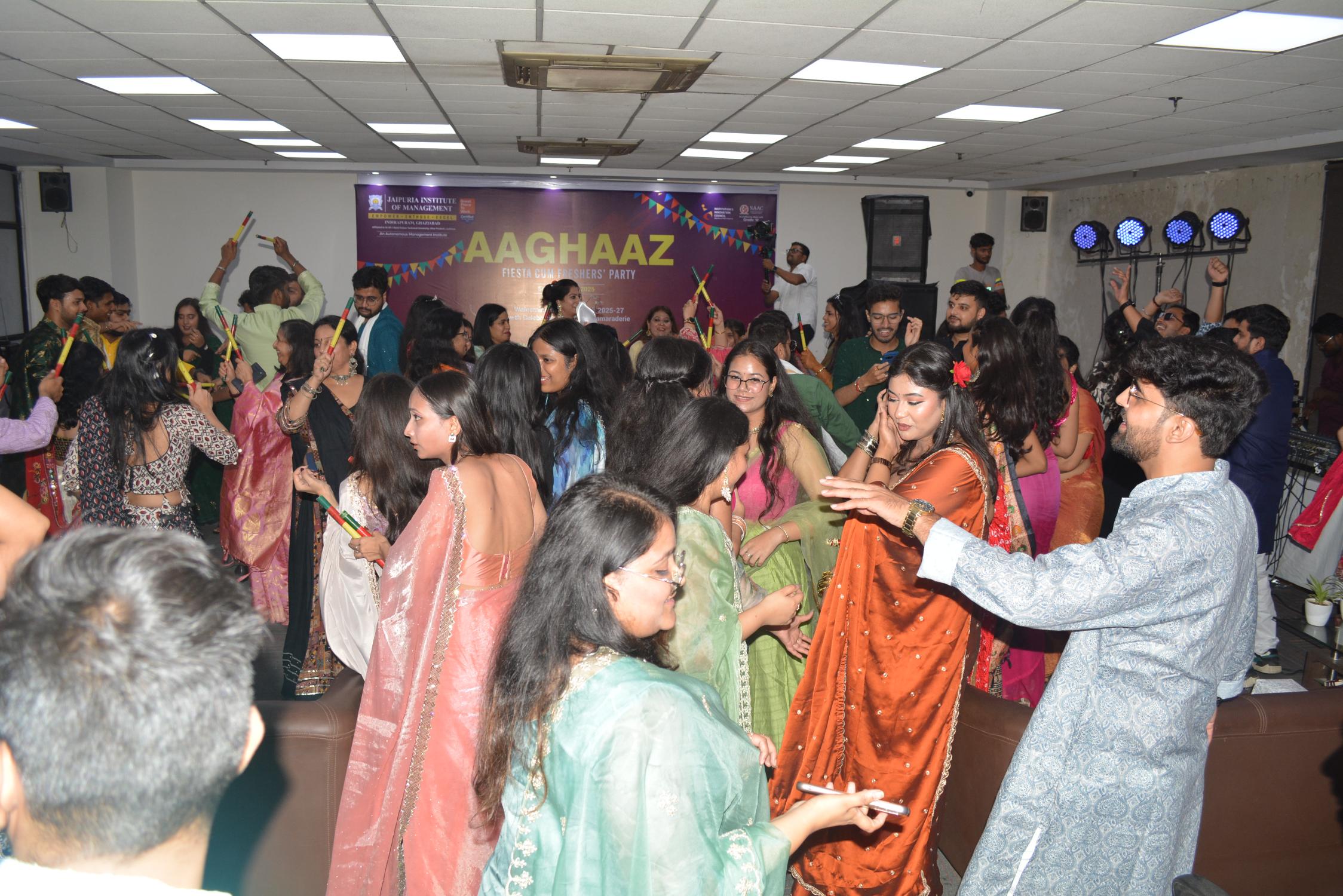 Jaipuria Institute of Management, Ghaziabad celebrated AAGHAAZ 2025, the annual Fiesta cum Freshers’ Party, with grandeur and infectious enthusiasm on 30th September 2025 at the JIM Ground. The event marked the vibrant beginning of the academic journey for the MBA Batch 2025–27, bringing together tradition, creativity, and celebration in one unforgettable evening.