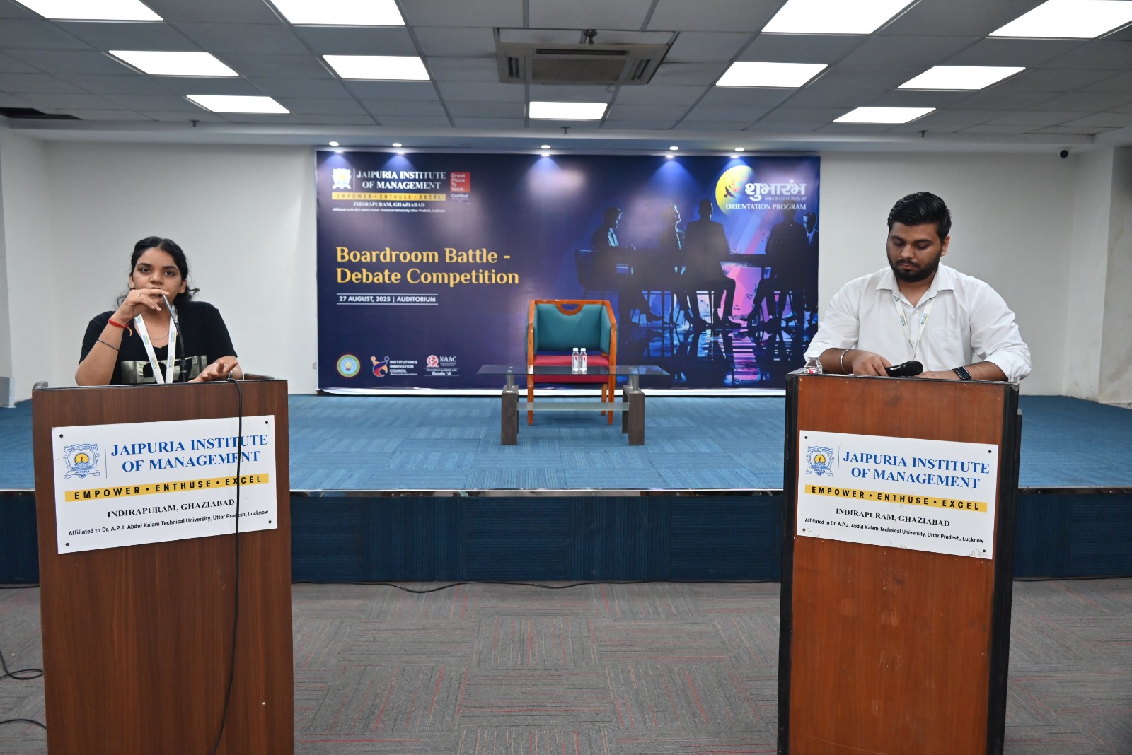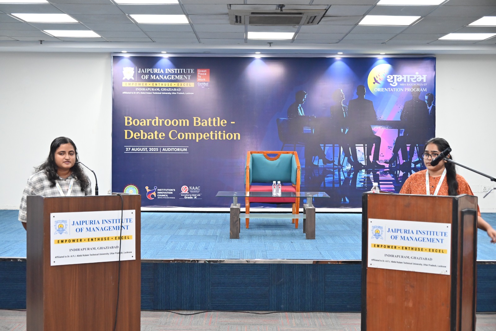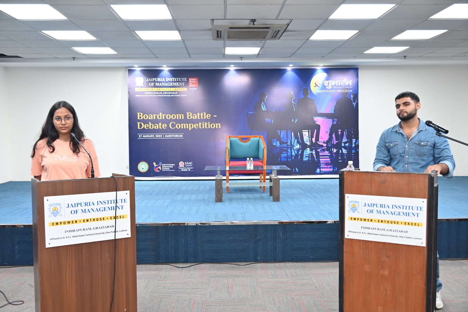 On 27th August 2025, the Jaipuria Institute of Management, Ghaziabad celebrated National Entrepreneurship Day with a thought-provoking Debate Competition that brought together budding entrepreneurs and critical thinkers from across programs. The event aimed to spark engaging discussions on the evolving entrepreneurial landscape in India and beyond, while fostering analytical and presentation skills among students.