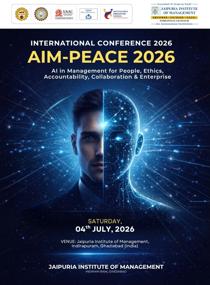 AIM-PEACE 2026 – AI in Management for People, Ethics, Accountability, Collaboration & Enterprise focuses on redefining management practices in an era where Artificial Intelligence is not just a technological tool but a strategic enabler of organizational transformation. The theme emphasizes a human-centric approach to AI adoption, ensuring that technological advancements align with ethical principles, transparency, and accountability. It highlights the importance of collaborative intelligence—where humans and AI systems work together to enhance decision-making, innovation, and productivity. Furthermore, the conference underscores the role of AI in building responsible enterprises that integrate ESG considerations, foster trust among stakeholders, and contribute to sustainable and inclusive growth in a rapidly evolving digital economy.