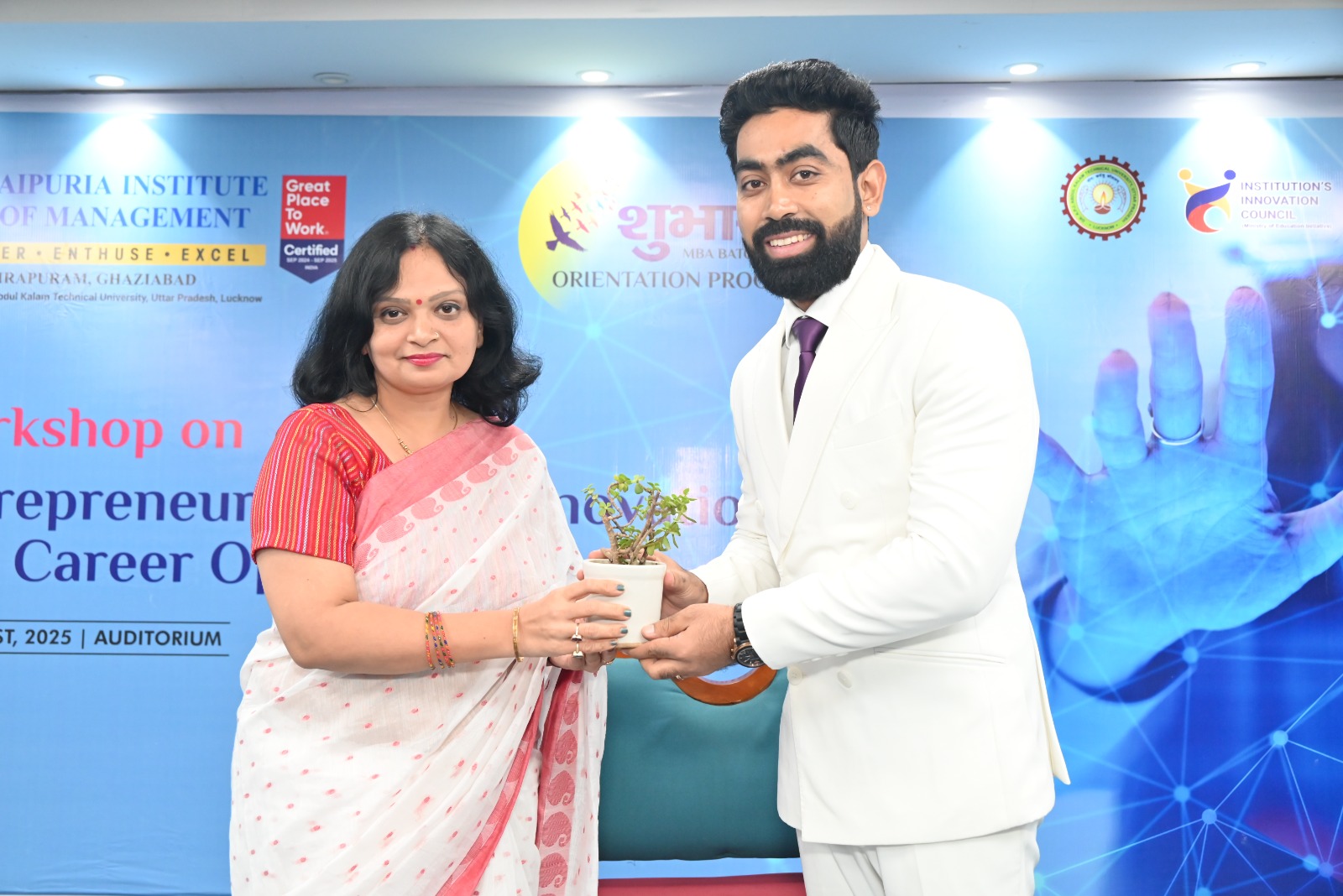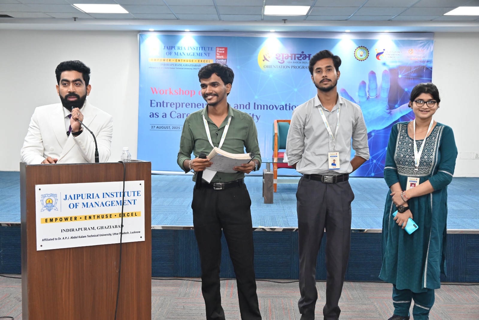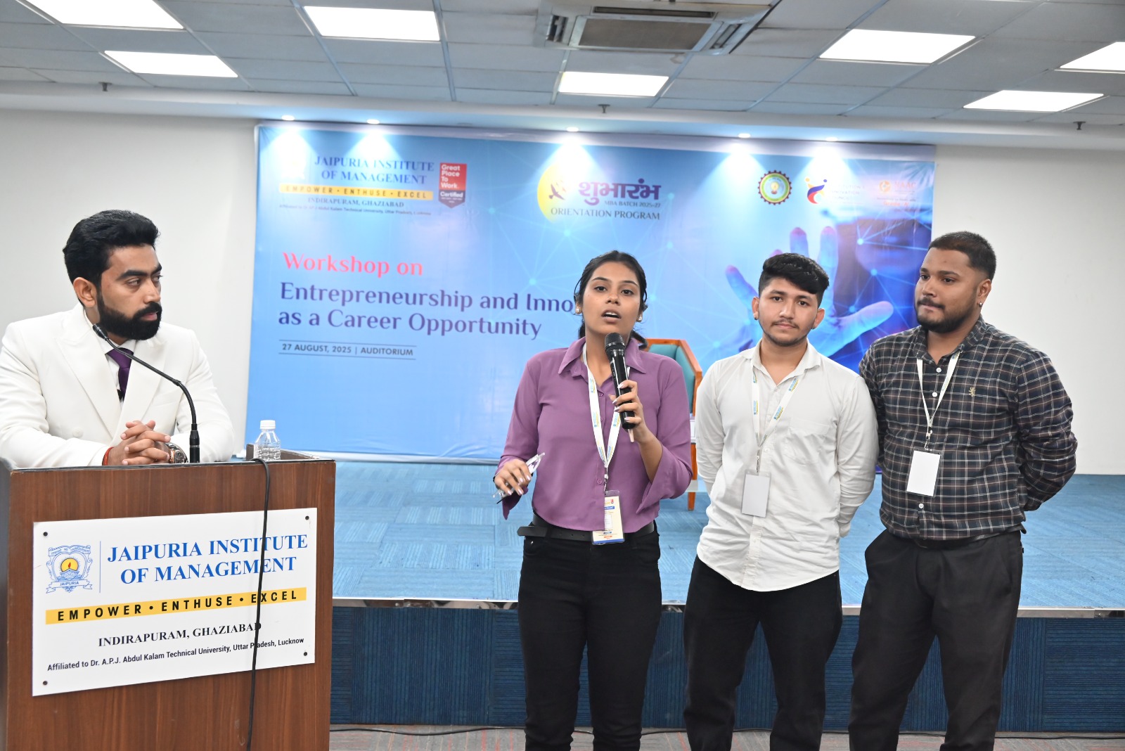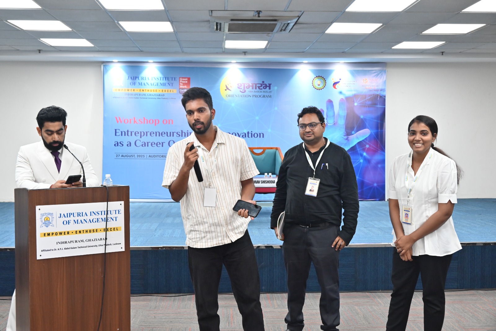On 27th August 2025, Jaipuria Institute of Management, Ghaziabad, under the aegis of its Institution’s Innovation Council (IIC), organized an inspiring workshop on “Entrepreneurship and Innovation as a Career Opportunity.” The session was specially designed for the newly inducted MBA batch to broaden their career perspectives and nurture an entrepreneurial mindset at the very start of their academic journey.