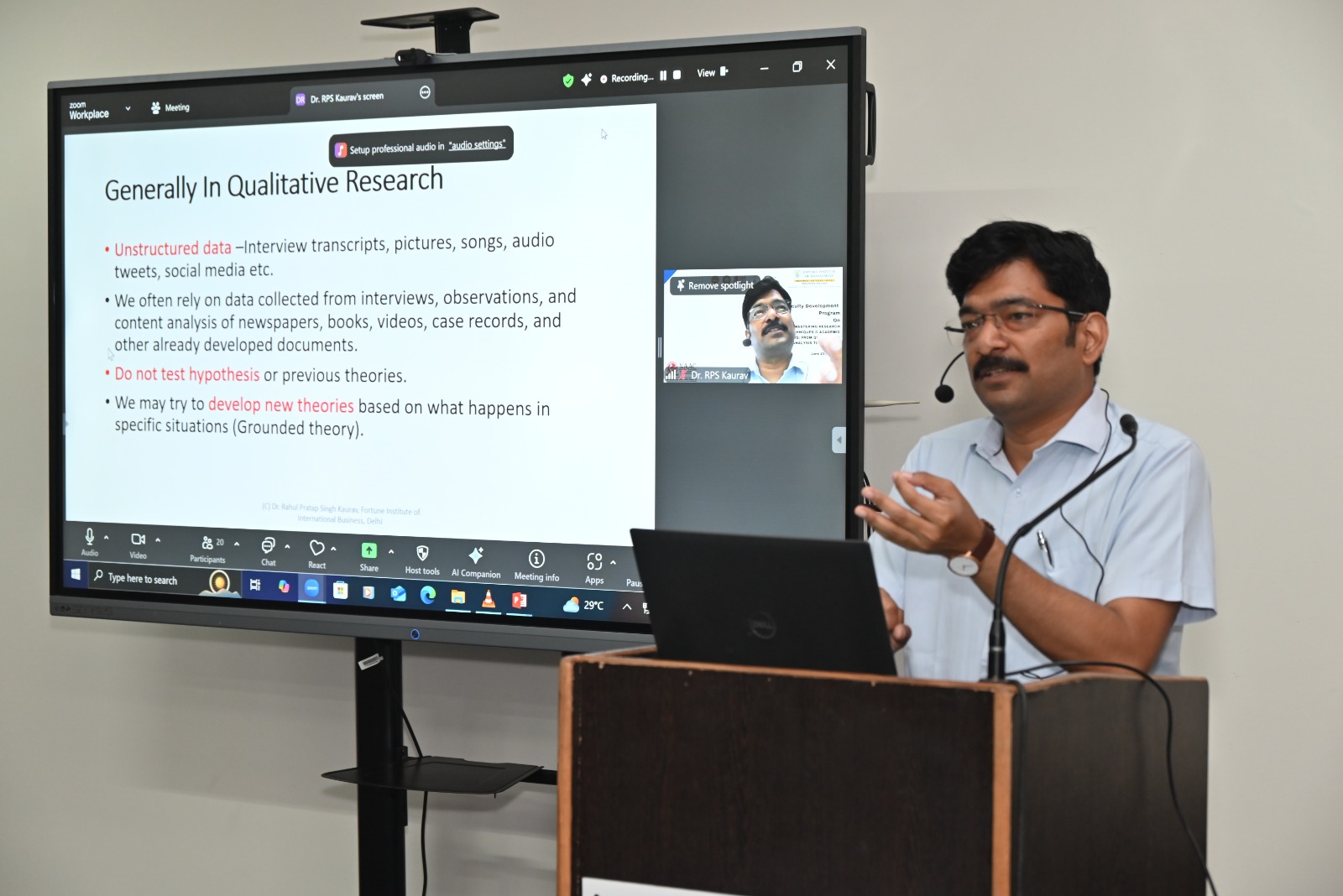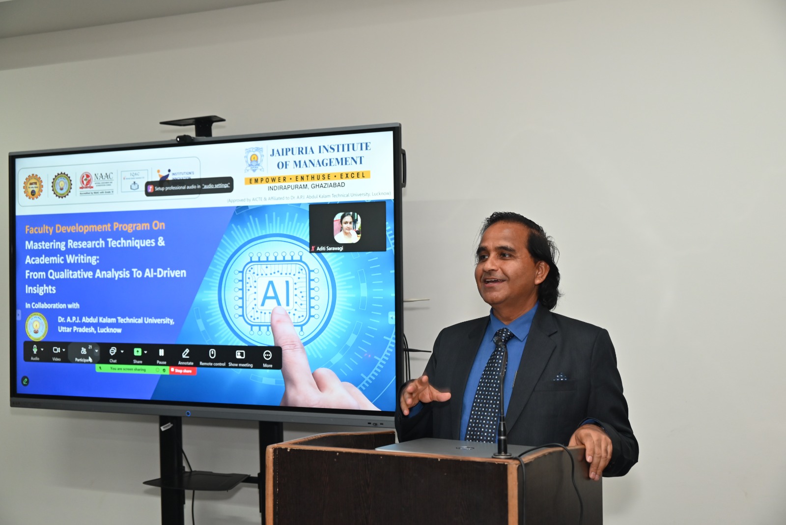 The 5-Day Faculty Development Program (FDP) at Jaipuria Institute of Management, Ghaziabad, commenced on June 20, 2025, with an intensive session focused on qualitative research methodologies using MAXQDA—a leading software for qualitative and mixed-method data analysis. The session was conducted in hybrid mode and witnessed enthusiastic participation from faculty across institutions.