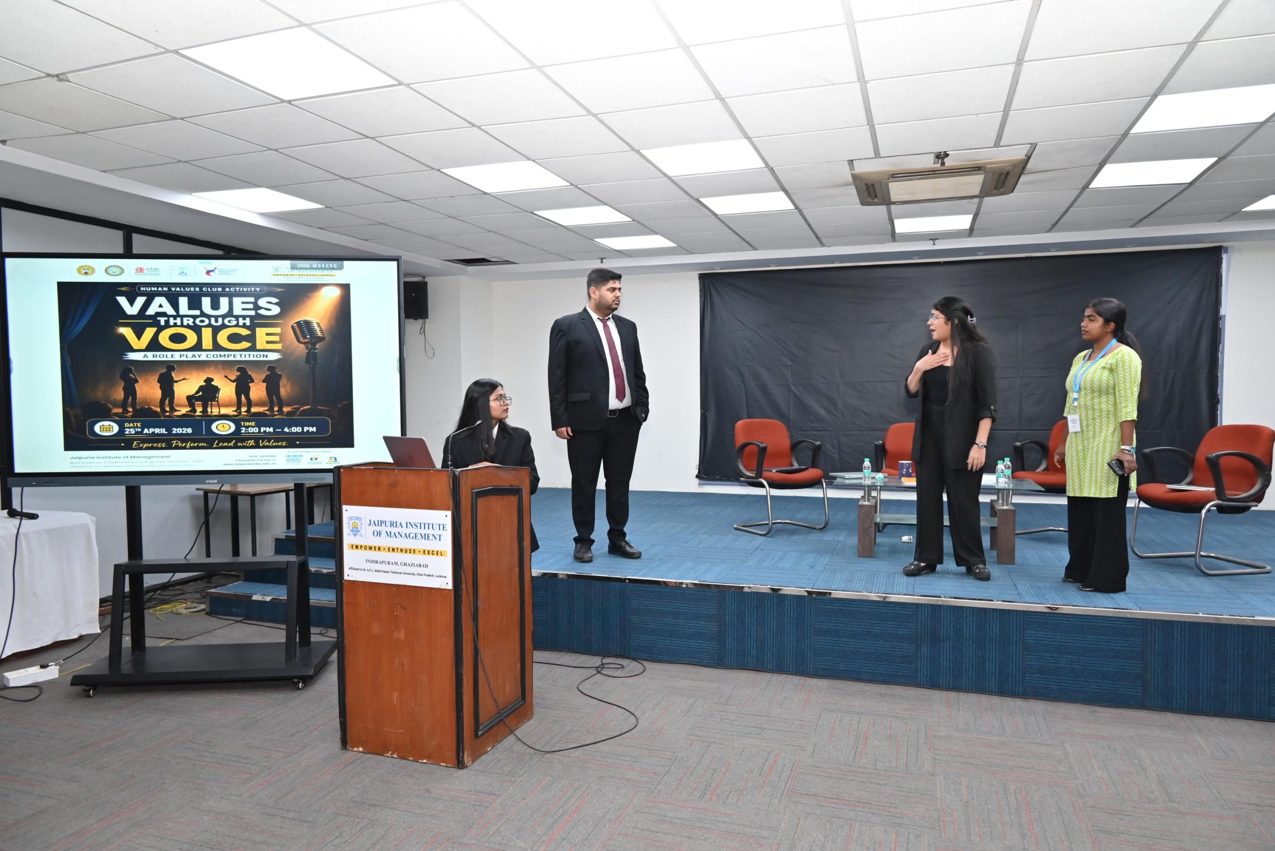 At Jaipuria Institute of Management, Ghaziabad, management education is designed to go beyond academics and focus on building responsible, value-driven leaders. Reinforcing this philosophy, the Human Values Club organized an engaging activity titled Role Play: Values through Voice on 25 April 2026 in the institute auditorium.