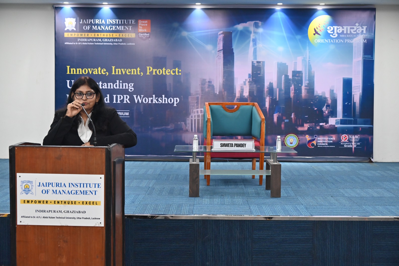 On 28th August 2025, Jaipuria Institute of Management, Ghaziabad, under the aegis of its Institution’s Innovation Council (IIC), organized a highly engaging workshop titled “Innovate, Invent, Protect: Understanding NISP and IPR.” The two-hour session aimed to strengthen MBA students’ knowledge of the National Innovation and Startup Policy (NISP) and Intellectual Property Rights (IPR), highlighting their practical applications in academic and entrepreneurial contexts.