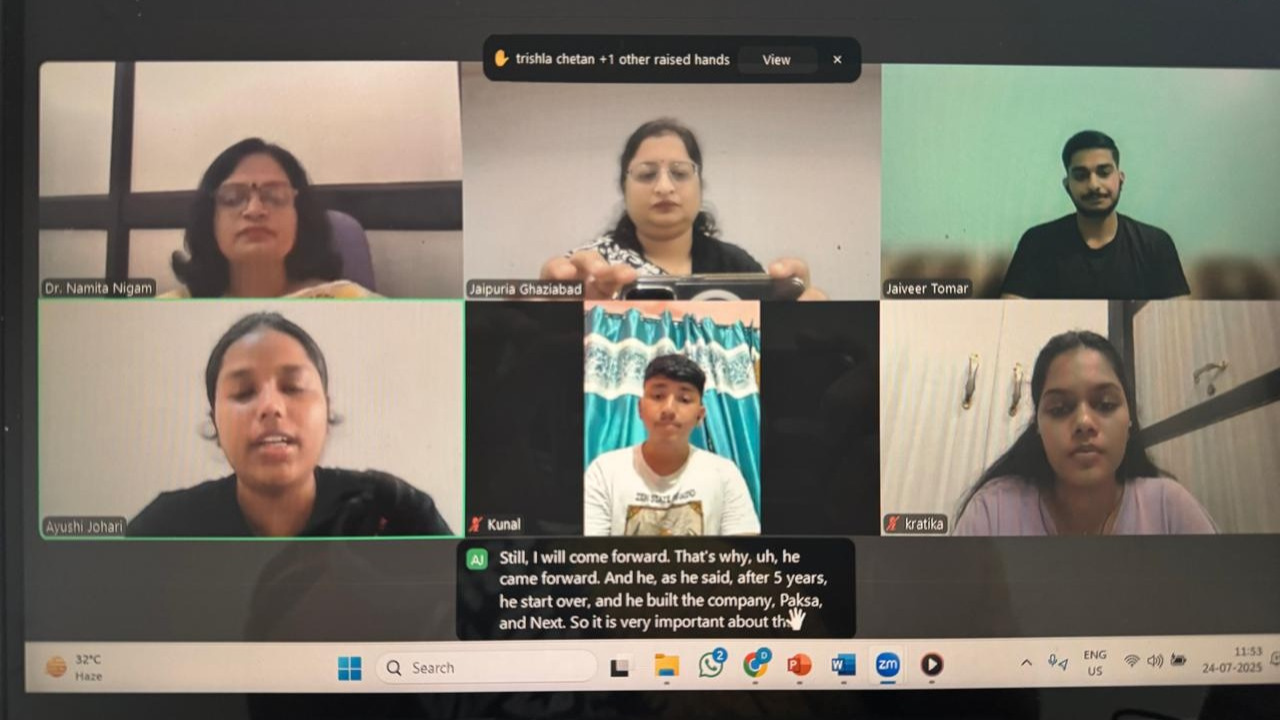 Jaipuria Institute of Management, Ghaziabad, through its Institution’s Innovation Council (JIM IIC), organized an insightful and interactive online session titled "Converting Innovation into a Start-up – Learning from Successful Entrepreneurs" on July 24, 2025, via Zoom. The session was led by Dr. Namita Nigam and Dr. Smita Agrawal, Associate Professors at Jaipuria Institute of Management, Ghaziabad.