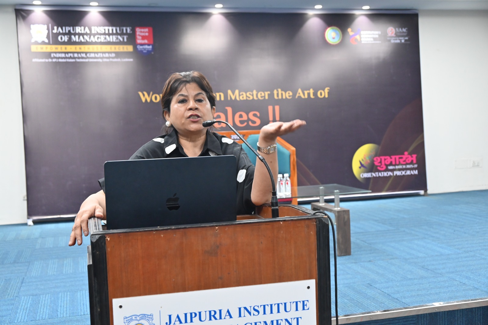 On 29th August 2025, Jaipuria Institute of Management, Ghaziabad, under the aegis of its Institution’s Innovation Council (IIC), organized an expert session on “Mastering the Art of Innovative Sales Strategies for Startups.” The session was conducted by Ms. Suman Verma, Chief Marketing Officer, Hamdard, a distinguished industry leader with extensive experience in marketing, brand building, and entrepreneurship.
