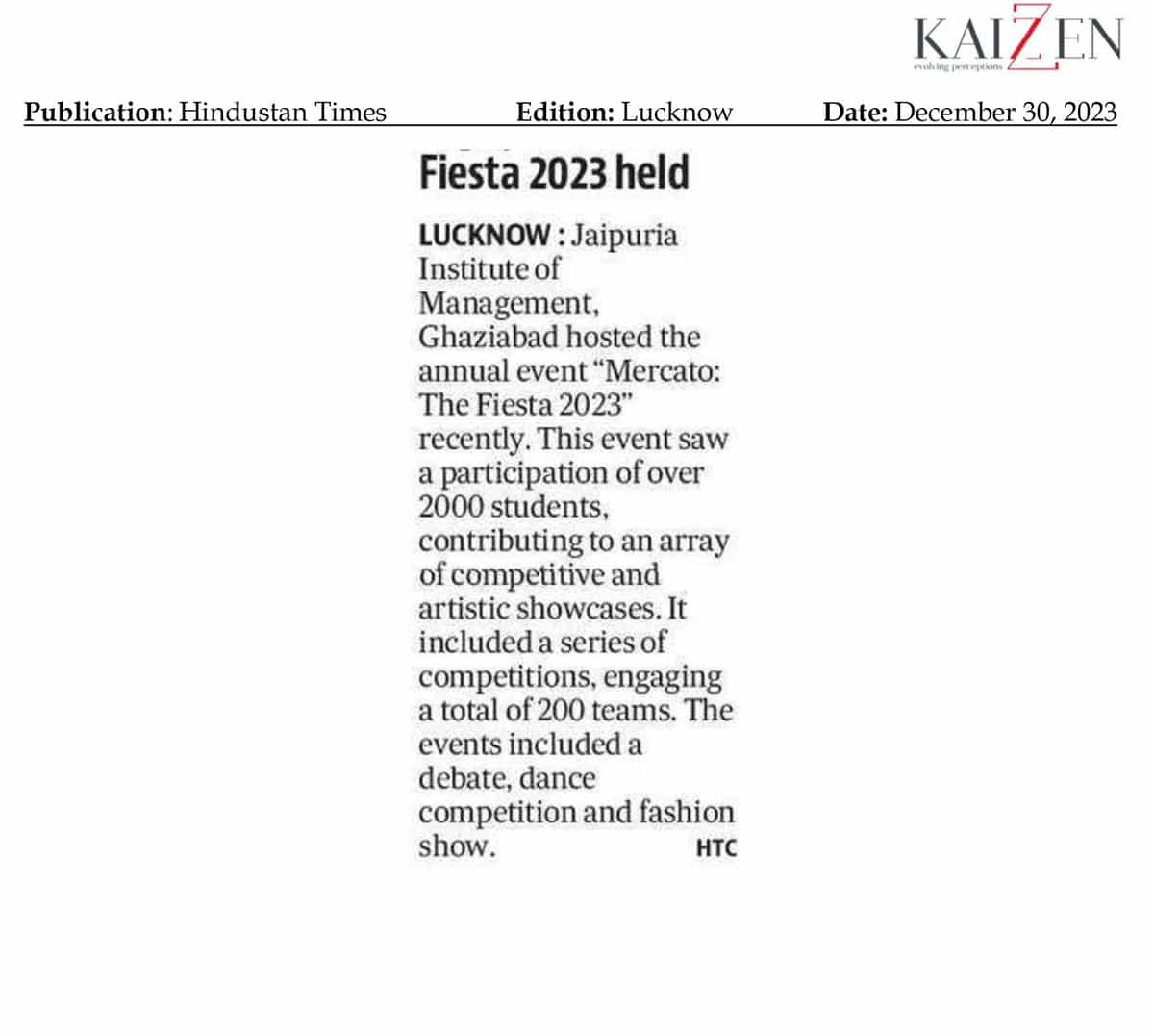 Mark your calendars for the most vibrant event of the year at Jaipuria Institute of Management, Indirapuram, Ghaziabad! Mercato – The Fiesta 2025 is back, bringing creativity, talent, innovation, and entertainment together under one roof. Get set for a full day of competitions, cultural showcases, and high-energy performances.