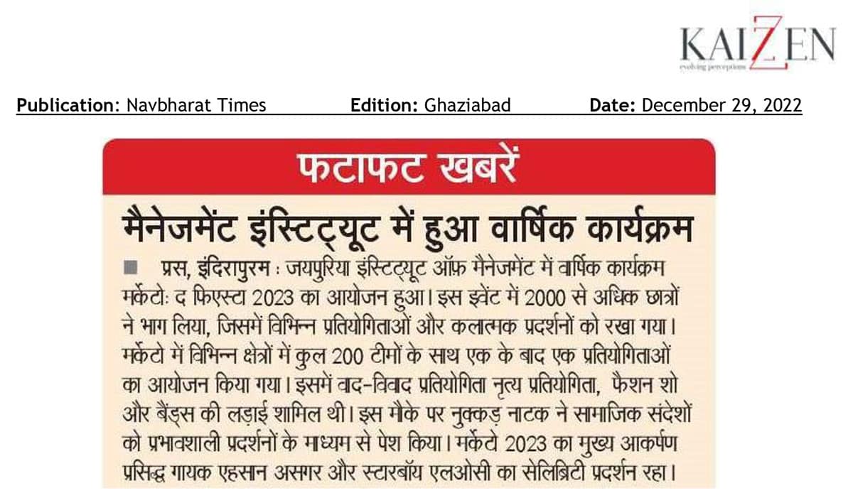 Venue: Jaipuria Institute of Management, Indirapuram, Ghaziabad Campus