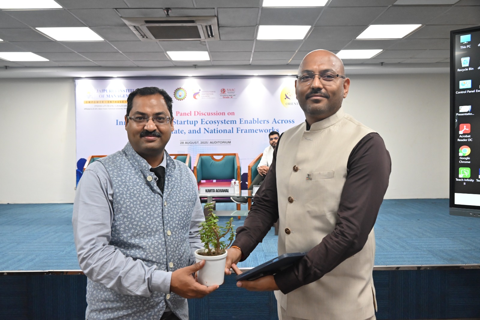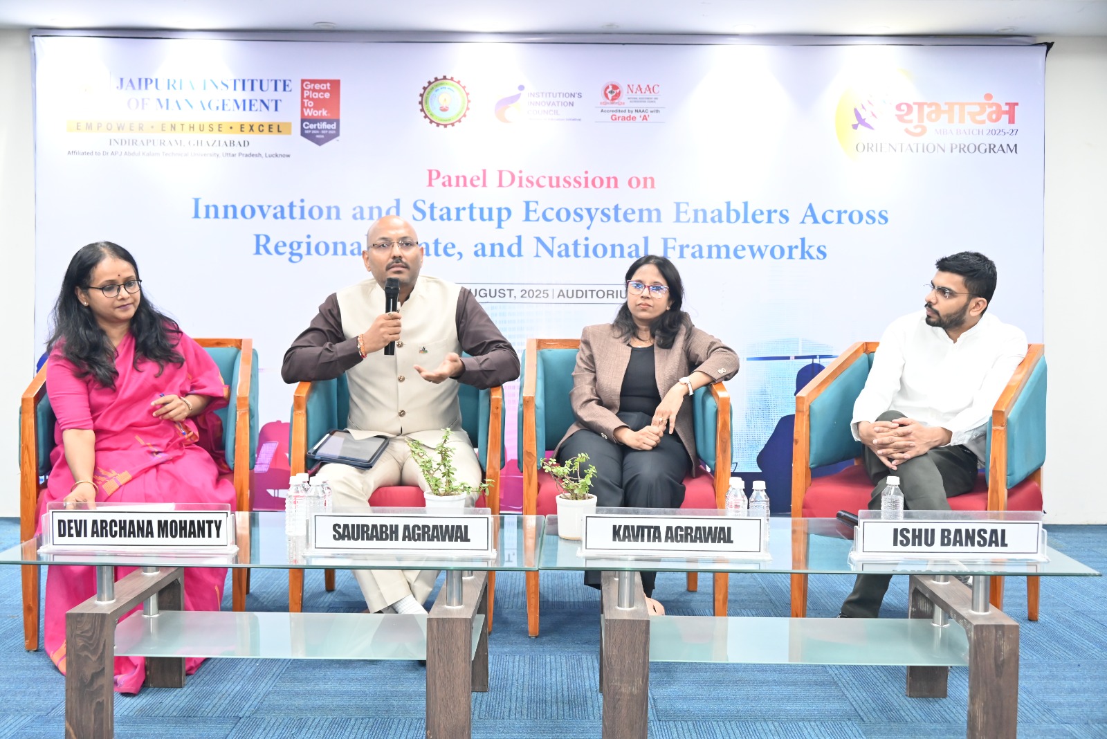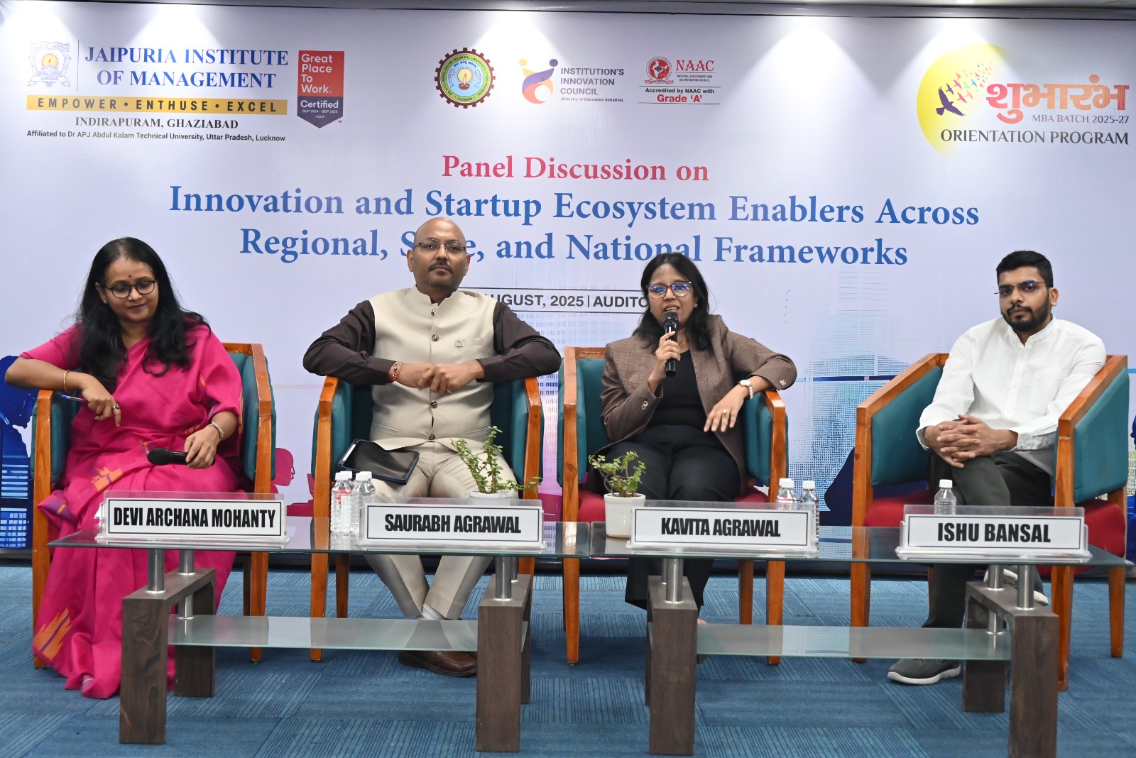 On August 28, 2025, Jaipuria Institute of Management, Ghaziabad hosted an engaging panel discussion on “Startup Ecosystem Enablers across Regional, State, and National Framework” at the JIM Auditorium. The session was designed to give students first-hand exposure to the entrepreneurial ecosystem, featuring real-world insights from successful startup founders.