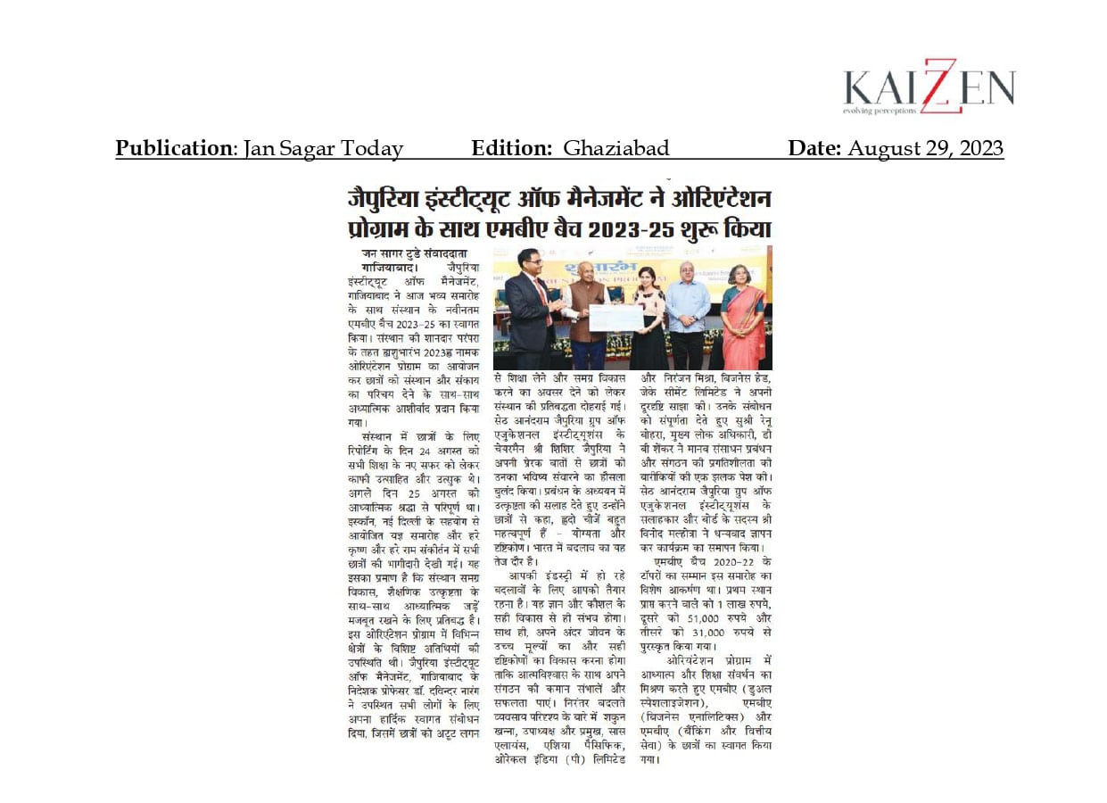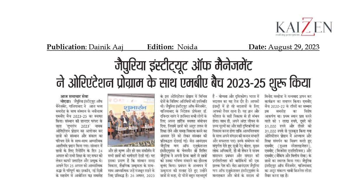 Explore the media recognition we’ve earned, reflecting our dedication to delivering quality education, fostering ethical values, and nurturing future leaders. Stay tuned as we showcase snippets of our media coverage, highlighting the strength and reputation of Jaipuria Institute of Management Ghaziabad.