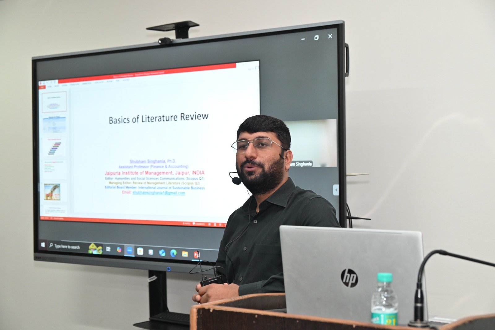 Led by Dr. Shubham Singhania from Jaipuria Institute of Management, Jaipur, the day focused on reinforcing core research competencies through structured literature review and bibliometric analysis techniques.