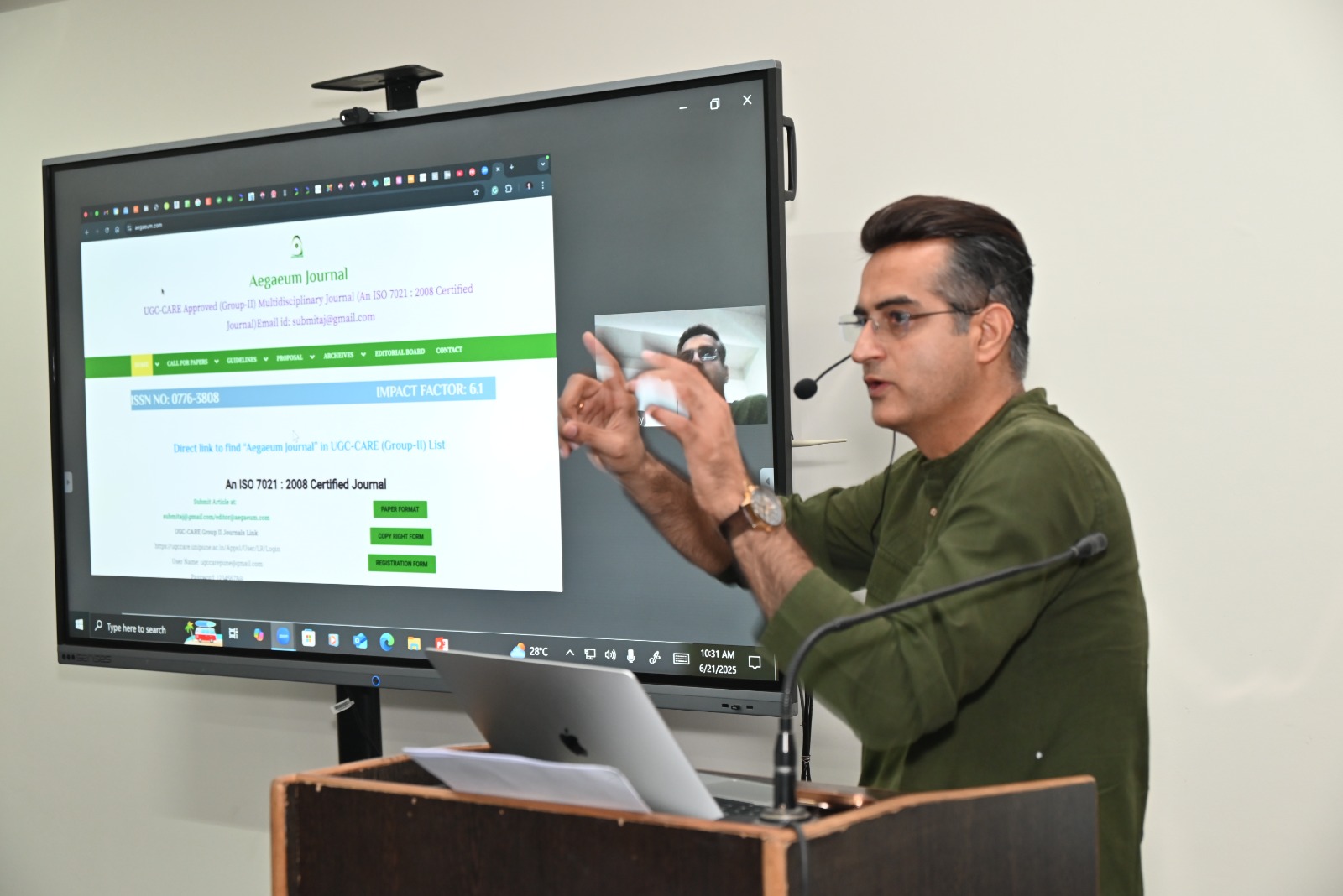 Led by Dr. Sumit Narula, Dean at Bennett University, the session explored the pressing issue of predatory, cloned, and fake journals. Dr. Narula offered practical strategies for identifying legitimate publication platforms by analyzing indexing status, editorial board credibility, and red flags in call-for-paper emails. Participants also learned to detect fraudulent impact factors—an area of growing concern in academia—by examining common manipulation tactics used to mislead researchers.