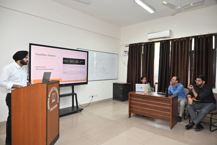 Each presentation was critically evaluated by a panel of faculty mentors who provided structured feedback to help refine and enhance the feasibility of the ideas.